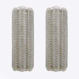 Paire d'appliques murales italiennes en verre de Murano de style moderne du milieu du siècle, modèle « Reticello », années 1990