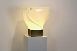 lampe de table en verre blanc opalescent leucos, édition limitée, faite à la main
