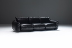 Marenco 255 Sofa Mario Marenco Arflex Italy 1970 Original black leather bodied three seat sofa on a low rounded base The Marenc