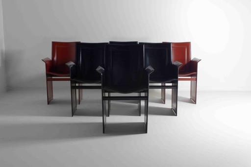 3X Chaise en cuir rouge "Linda" d'Arrben