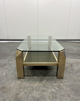 Table basse vintage à deux étages en belgochrome 23kt, 1970