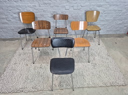 Mixed Set of 4 Vintage Design Kitchen Chairs by Brabantia, Wood-Effect Formica, The Netherlands, 1960s