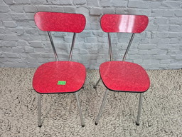 Ensemble de 2 chaises de cuisine design vintage de Brabantia, en Formica rouge marbré, Pays-Bas, années 1960