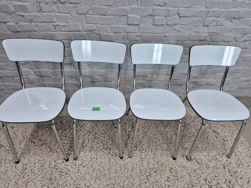 Set of 4 Vintage Design Kitchen Chairs by Brabantia, White Linen-Textured Formica with Black and Silver Trim, The Netherlands