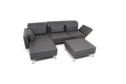 Modèle d'exposition de canapé Brühl Moule en cuir noir avec fonction couchage