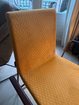 6x chaises de salle à manger Dutchbone dont 2 en velours noir sans dossier et 4 en jaune ocre avec dossier