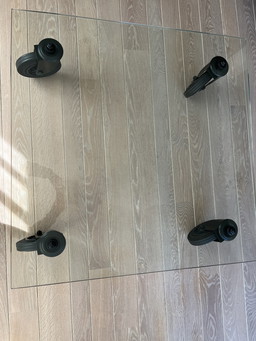 Table basse en verre Fontana Arte sur roulettes
