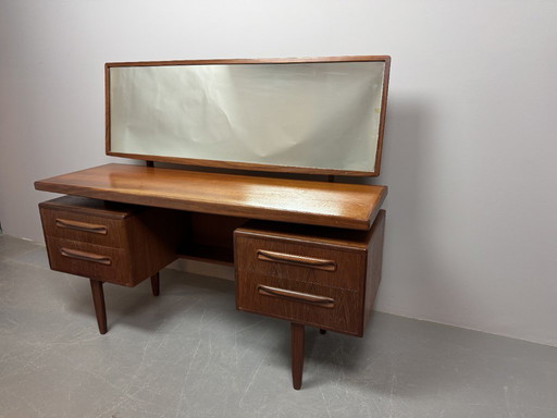 Mid-Century Teak G Plan Fresco Dressing Table with Cabinet and Wide 'Floating' Mirror, England, 1960s.