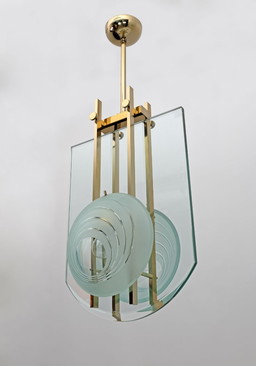 Gallotti & Radice Mid-Century Modern Italian Brass and Crystal Pendant, 70s