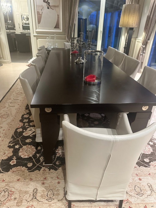 Grande table de salle à manger Giorgetti + 8 chaises