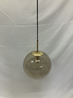 Suspension vintage en laiton et verre fumé, Limbourg Glashütte, 1970