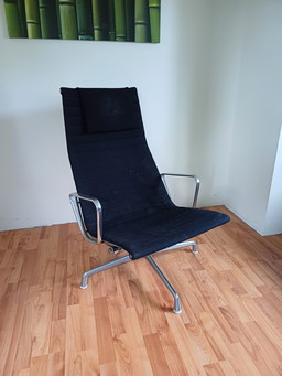 Charles & Ray Eames EA124 Chaise longue en tissu noir, années 1970
