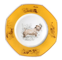 Hermès Paris – Assiette décorative en porcelaine Série « Chiens courants & Chiens d’arrêt » – Sealyham Terrier