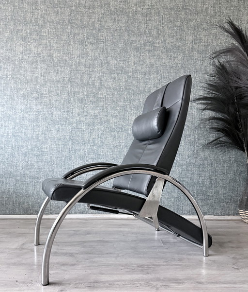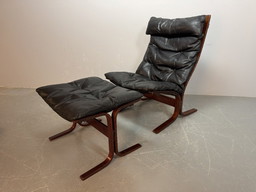 Mid-Century Scandinavian Design Leather Siesta Lounge Chair and Ottoman Designed by Ingmar Relling, Norway 1970s.