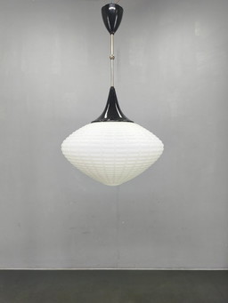 Suspension MCM vintage des années 50 - Pull down / réglable - Tchécoslovaquie - Verre Opaline - Kamenický Šenov