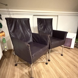 Six chaises de salle à manger, matière cuir, couleur anthracite