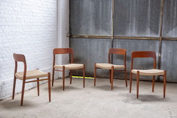 Bois: Møller était passé maître dans l'utilisation du bois dans ses créations. Il choisissait souvent le teck pour sa durabilité et sa beauté naturelle. Le bois était souvent sculpté et fini à la main pour créer des textures et des détails uniques. L'utilisation du bois donnait à ses meubles un aspect chaleureux et organique, ce qui leur permettait de s'intégrer parfaitement dans différents styles d'intérieur.
