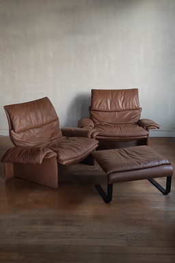 Set Vela Alta vintage en cuir original par Giovanni Offredi pour Saporiti Italie