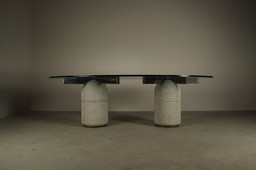 Table en verre avec piètement en béton, conçue par Sergio & Giorgio Saporiti pour Saporiti.