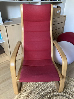 2 fauteuils lounge suédois rouges « Lamello » (peuvent être vendus individuellement ou en lot)