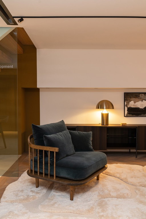 Fauteuil &tradition Little Petra VB1 en noyer, peau de mouton Moonlight