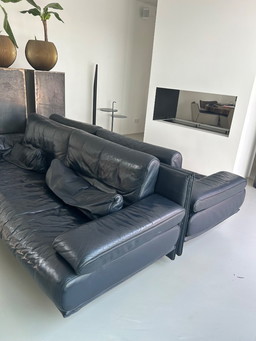 Rolf Benz 50 Cuir Olive Gris Canapé Fonction relax + pouf