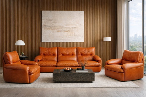 Ligne Roset Togo - siège trois places en cuir naturel cognac