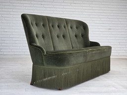 Canapé danois 2 places des années 1950, velours de mobilier vert/honing