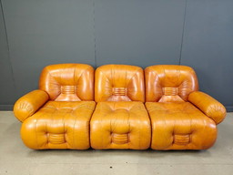 Canapé 3 places en cuir italien Mid Century, années 1970