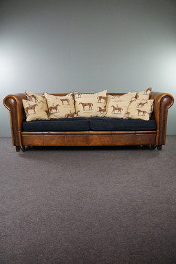Spacieux canapé 3 places en cuir de mouton avec coussins en tissu