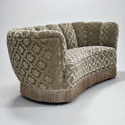 Canapé incurvé 2 places danois des années 1960, revêtement en velours vert clair.
