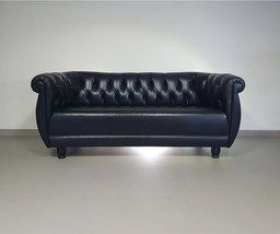 Vintage zwart leren 2-zitsbankVintage zwart leren 2-zitsbank