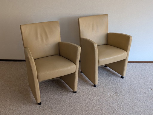 Deux fauteuils en cuir à roulettes, couleur crème, Longlife Valdalpone