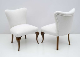 Fauteuils italiens des années 1950 en tissu crème avec pieds en fer