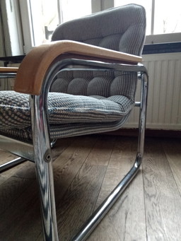 Fauteuil tubulaire en acier bleu/gris avec repose-pieds, années 1960 – État d'origine