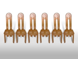 Série de 6 Chaises de la Maison Regain en Orme & Tissu 1980