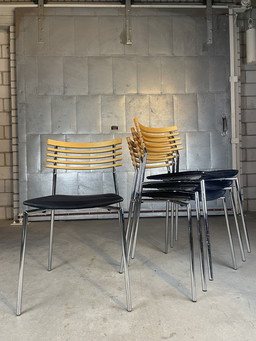 Rolf Benz Design Chaise 7800 Set 2 St Cuir Crème Avec Pieds Chrome