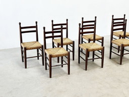 Ensemble de six chaises de salle à manger rustiques et brutales