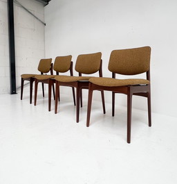 4x Chaises suédoises en bois vintage avec assise en tissu