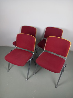 6 Chaises Fourmi de 1977. Modèle 3107, teinté rouge 626