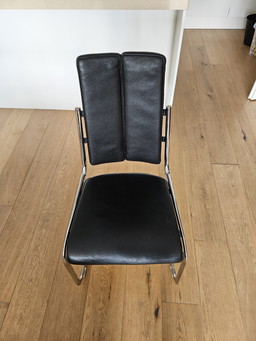 =Chaises de salle à manger en cuir Sadle noir à haut dossier, design vintage. Italie, 1970.