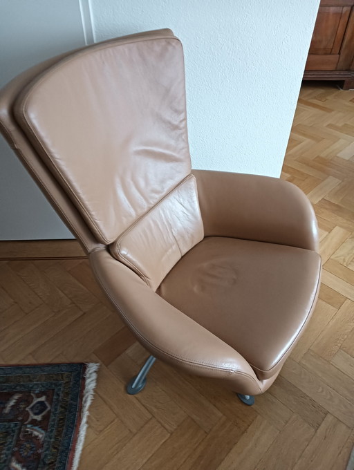 Label Vandenberg Hidde Soft Fauteuil pivotant avec pouf Gin Cuir naturel Bovino