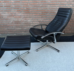 New ! Wilkhahn Lounge Chair with Stool, Premium Wool, Aluminum and Chrome, Orig. Price 2800,- Euro
