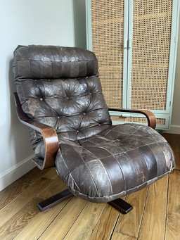 Fauteuil Vintage Søren Nissen et Ebbe Gehl en cuir brun
