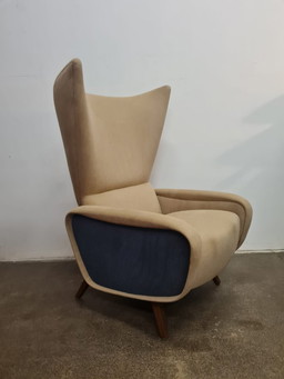 Paire de fauteuils en velours dans le style de Gio Ponti, Italie, années 1940