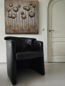 Vintage Leolux brown leather/oak 'Lounge chair and ottoman' by Harry de Groot - 1970