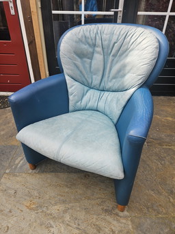 Rolf Benz 394 Fauteuil et pouf en cuir bleu