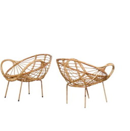 2 x fauteuil vintage rotin/webbing tube chromé châssis bois blanc