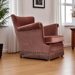 Chaise danoise à dossier haut des années 1970, velours rouge cerise, pieds en frêne