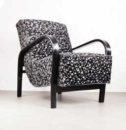 Fauteuil en tissu et bois du milieu du siècle, années 1950